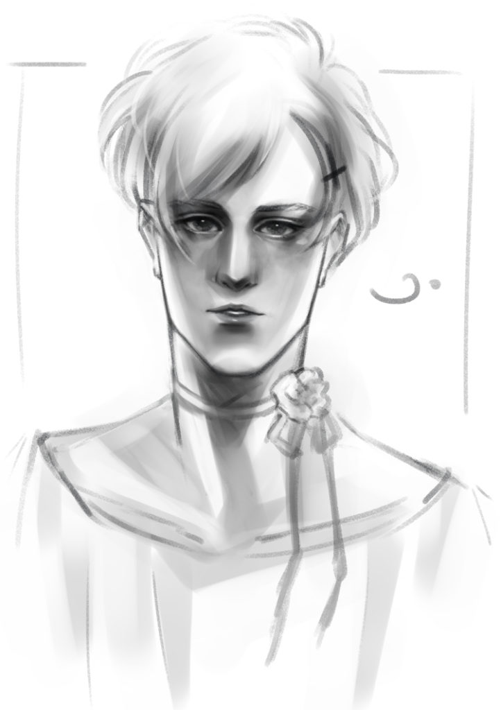 現代なのかなぁ…、なんとなくお衣装の印象的に中世とか、ちょっと昔なのかなと思ってちょっと若い(幼い)感じに描いている。