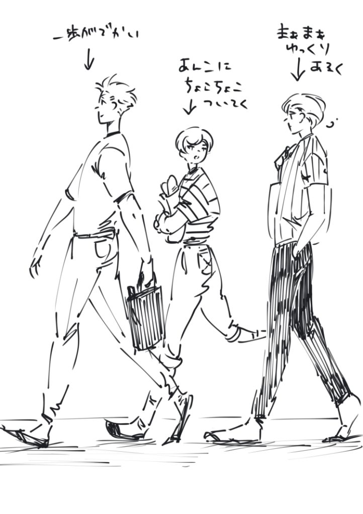 一歩でかくてずんずん先行っちゃうあんこに対してゆっくりマイペースに歩くノル君だからアイス君はノル君とお喋りしつつ、あんこにちょっと後ついて間もってる的なかんじ。