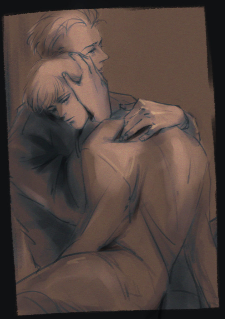 落書き いつかの歴史 こだ えむ 2023年8月22日 「だいじだ、俺らはそう簡単には消えねぇがら」 ほくおの歴史関連本を見ていると戦いもだけど、流行病などで92存続の危機って結構あったよね…と。 どの92でも消失・消滅危機はあったのかなって思うんだけども、この二人って長い事同盟59で「親友!兄弟!」「あんこ」って仲だし、お互いのそういう危機があった時本当に気が気じゃなかったのではないかと…。 カイジョウ封鎖された時も… あんこ 親友ー!!(そっちゃいぎでぇのにいげねっ!!!!!! ノル君 さすけね… ってしてたもんねぇ…あれアニメ化してくれないかなぁ…勿論眉毛ガン飛ばしするまでワンセットで( ˘ω˘ ){あとホクオホテルをぜひアニメで…円盤買うから ところで、英語圏の方が多い別のSNSでは一応英語で冒頭セリフを付けたんだけど、色々訳をみて“It’s okay. We won’t disappear so easily.”を採用した。映画とかドラマで、何か危機があった時に抱きかかえたりハグしたりしながら”It’s OK,,,”をポツリと、子供に言い聞かせるように言う感じあったなぁと思って。なんかそういう雰囲気好きだったので、実際の英語圏の言葉としてあってるかどうかはわからんけど採用。自分でさくさく書ける英語力欲しかった…(勉強しろ)